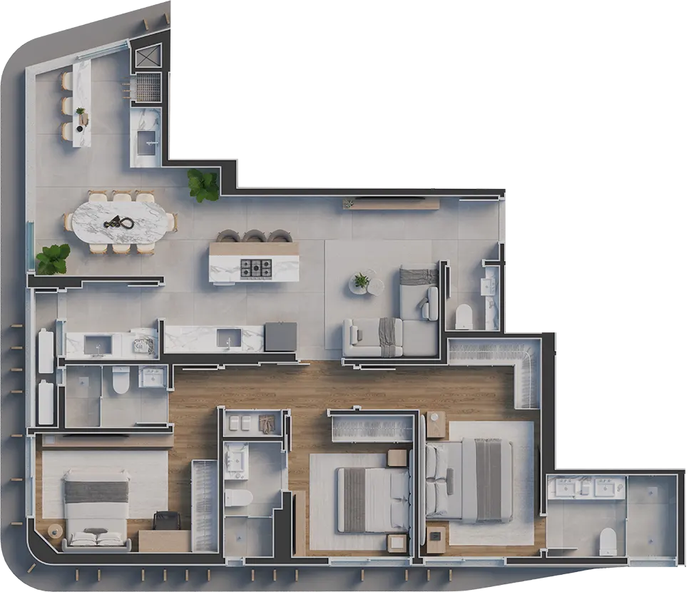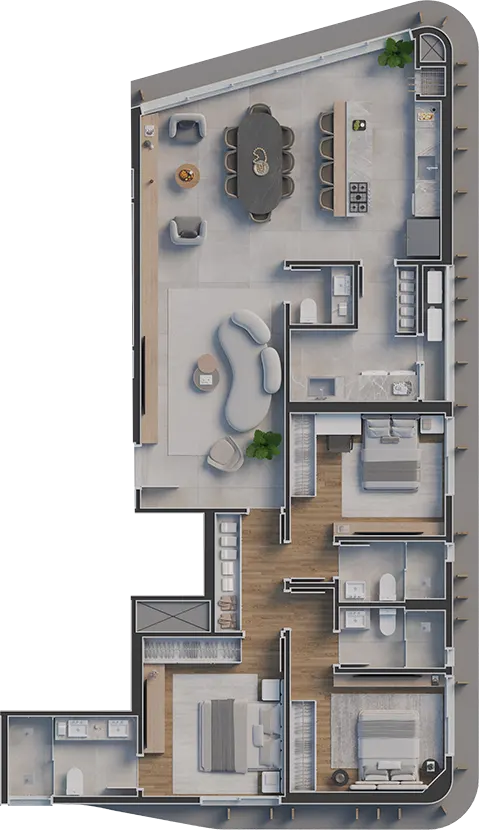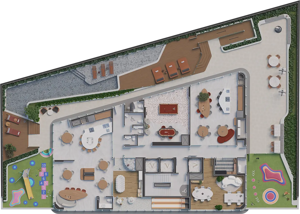 Um pavimento inteiro dedicado ao seu bem-estar, onde mais de 1.250 m² se transformam em convite constante à pausa. Piscinas aquecidas com vista para o mar, espaços gourmet, áreas kids e ambientes sociais se conectam naturalmente, criando cenários únicos para cada momento. Todos os espaços são entregues equipados e decorados, onde o tempo adquire outro ritmo e cada encontro ganha significado especial.