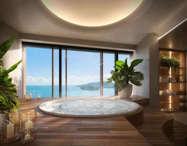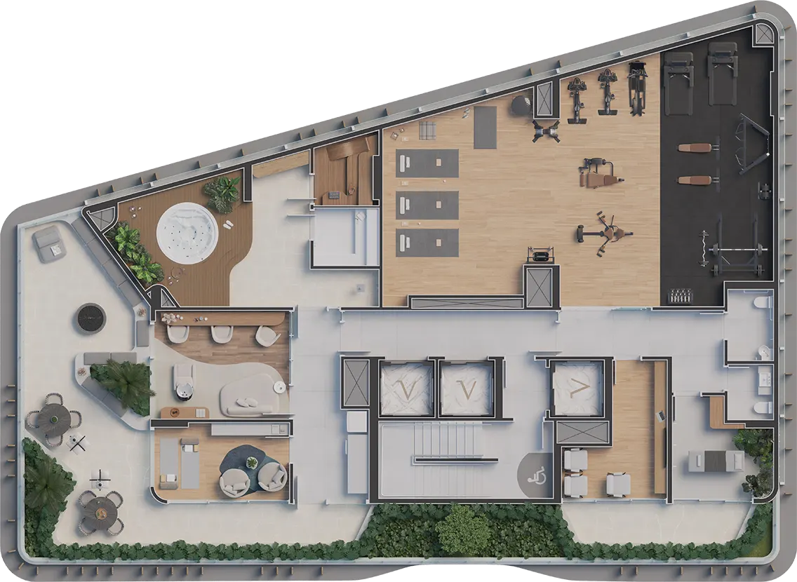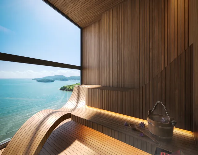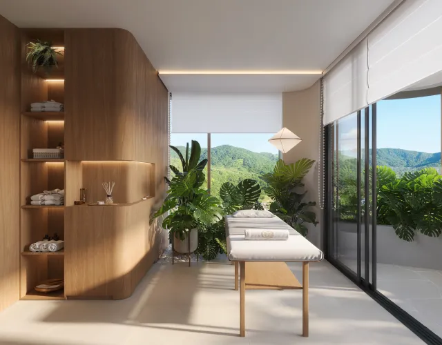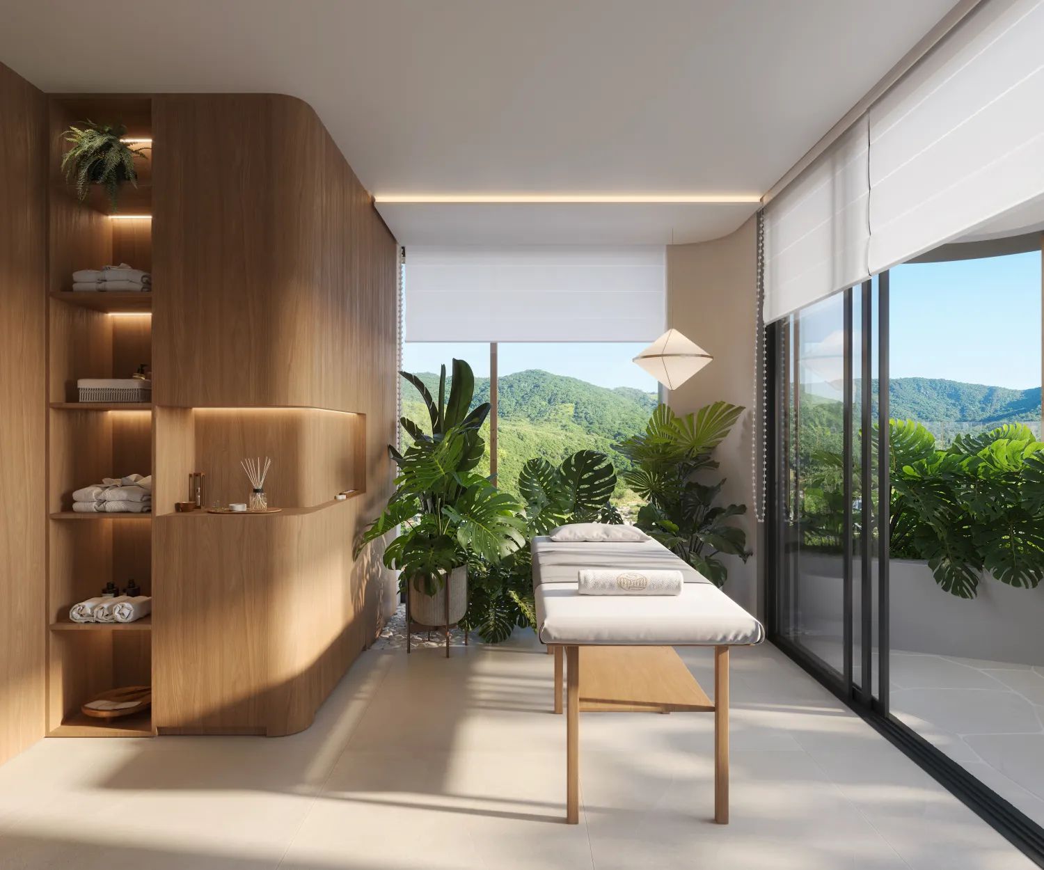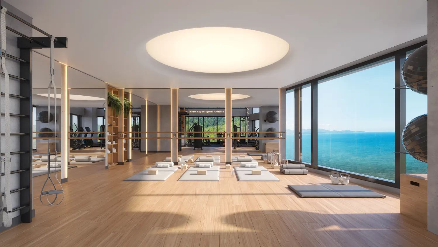 No topo do edifício, a 104 metros de altura, o Wellness ganha nova dimensão. O Rooftop combina academia, spa, saunas, salas de yoga e espaços de meditação em 377 m² suspensos entre céu e mar. É o primeiro da região a oferecer um conceito de bem-estar integral completo no último pavimento, onde cuidar de si mesmo se torna um ritual com vista infinita para o horizonte.