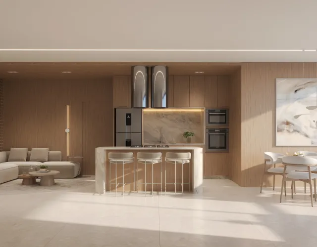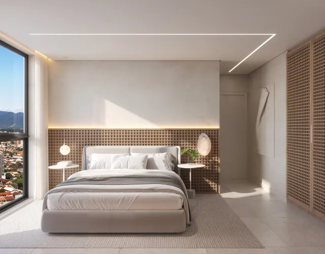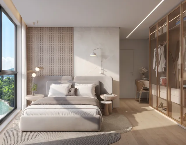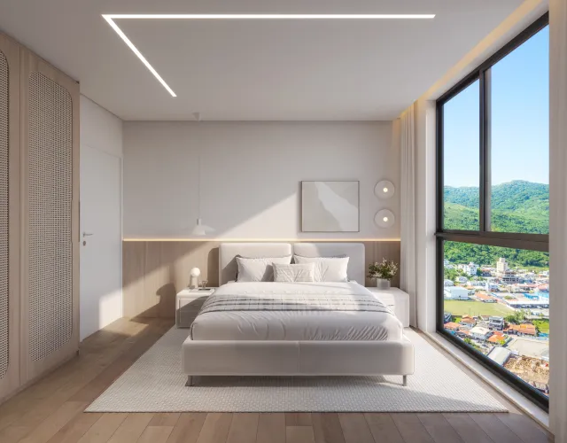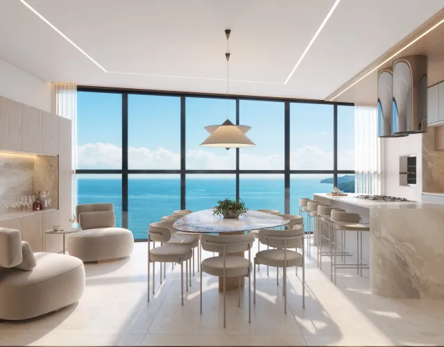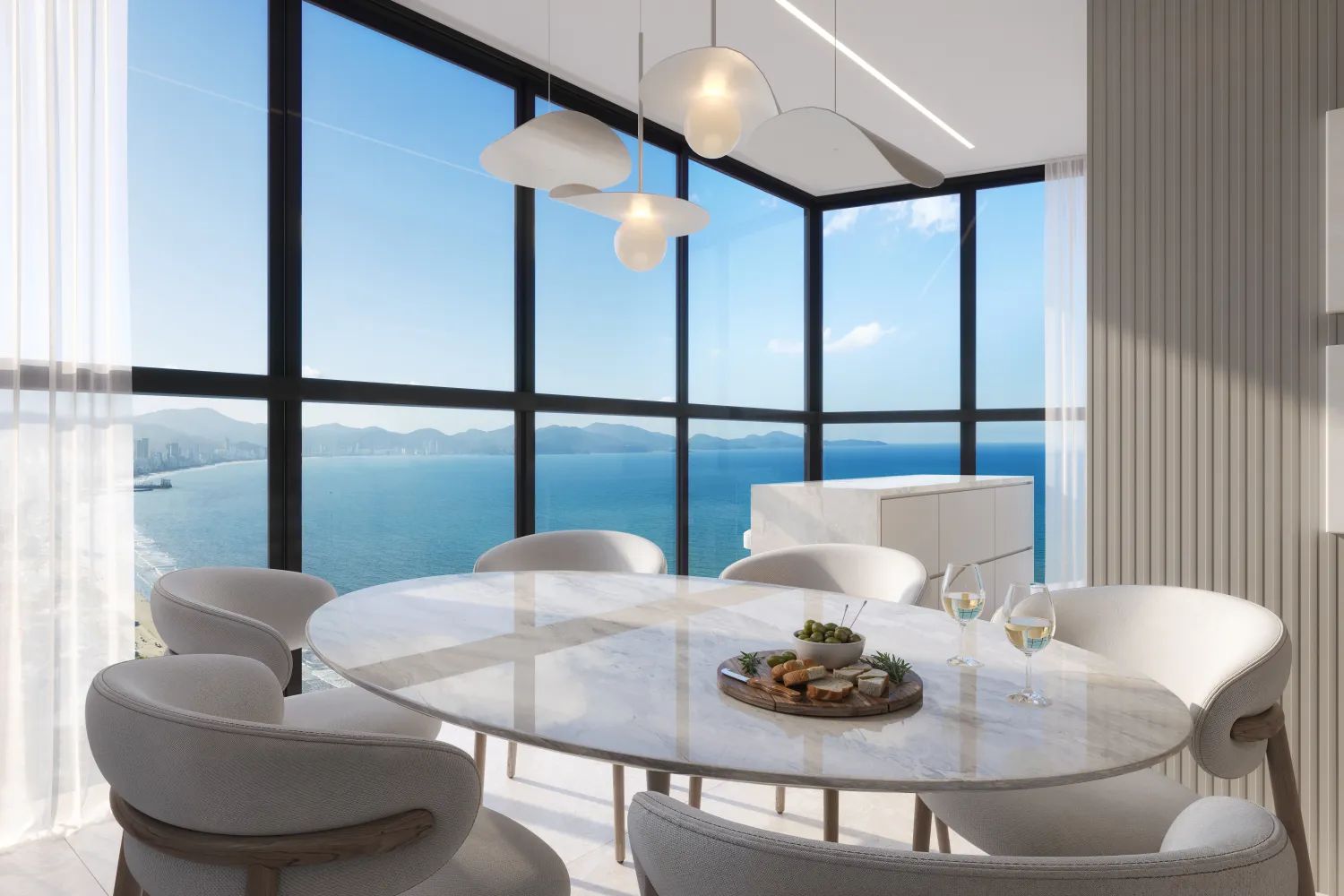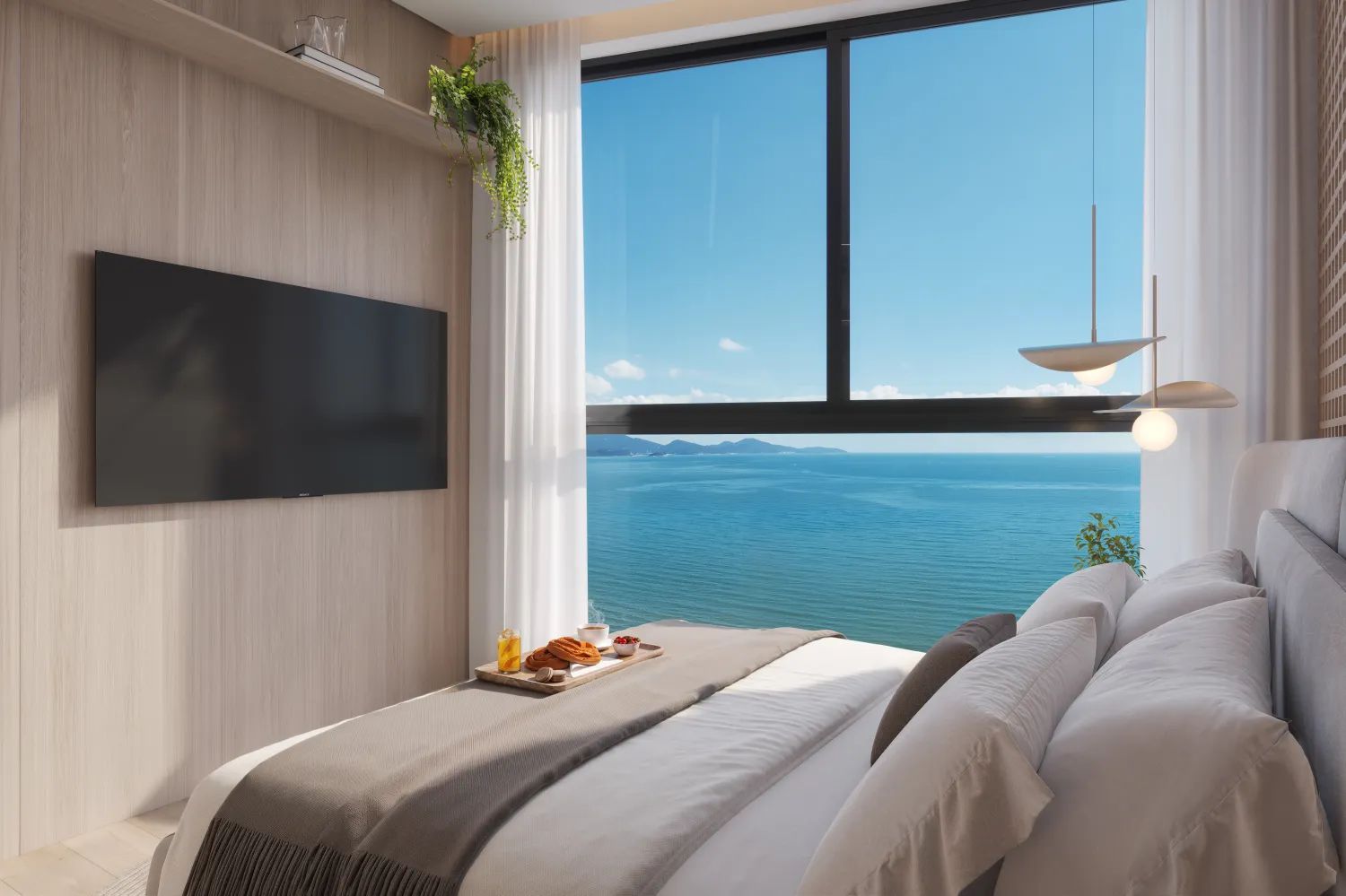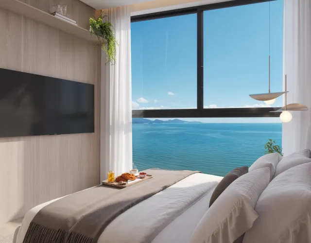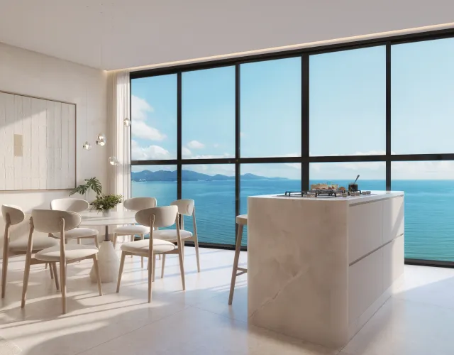 Apenas 72 residências exclusivas que fluem entre 2 e 3 suítes, com áreas que variam de 82 a 131 m². Cada apartamento é entregue com sacadas envidraçadas que integram o mar à sua rotina, transformando a vista em parte da decoração. Aqui, os espaços respiram com você - ambientes pensados para se adaptar aos seus momentos, onde a luz natural esculpe cada ambiente e o horizonte se torna extensão do seu lar.